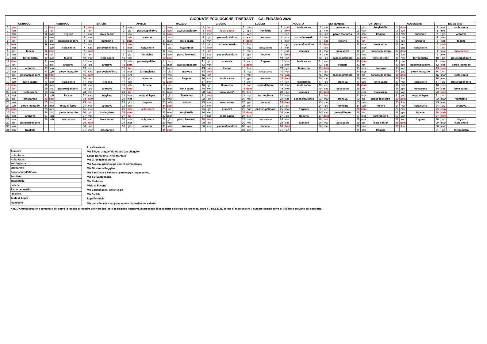 - Giornate ecologiche itineranti - programmazione anno 2026